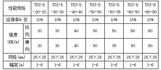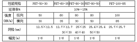 產(chǎn)品規(guī)格及性能參數(shù)(經(jīng)編滌綸土工格柵異型)
