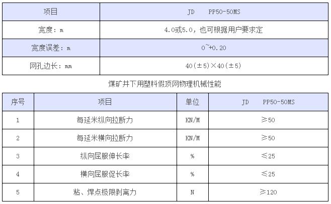 執(zhí)行標(biāo)準(zhǔn):Q/ZTJ·TG01-2006《煤礦井下用塑料假頂網(wǎng)》
