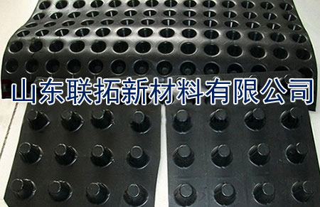 排水板是由聚苯乙烯(HIPS)或者是聚乙烯(HDPE)塑膠底板經(jīng)過(guò)沖壓制成圓錐突臺(tái)或者加勁肋的凸點(diǎn)(或中空?qǐng)A柱形多孔)而成,幅寬有3米,長(zhǎng)度有10米或者是15米。圓錐突臺(tái)的頂面膠接一層過(guò)濾土工布,以阻止泥土微粒通過(guò),從而避免排水通道阻塞使孔道排水順暢。 傳統(tǒng)的排水方式使用磚石瓦塊作為導(dǎo)濾層、使用較多的鵝卵石或碎石作為濾水層、將水排到指定地點(diǎn)。而用排水板取代鵝卵石濾水層來(lái)排水則省時(shí)、省力又節(jié)能、節(jié)省投資、還能降低建筑物的荷載。